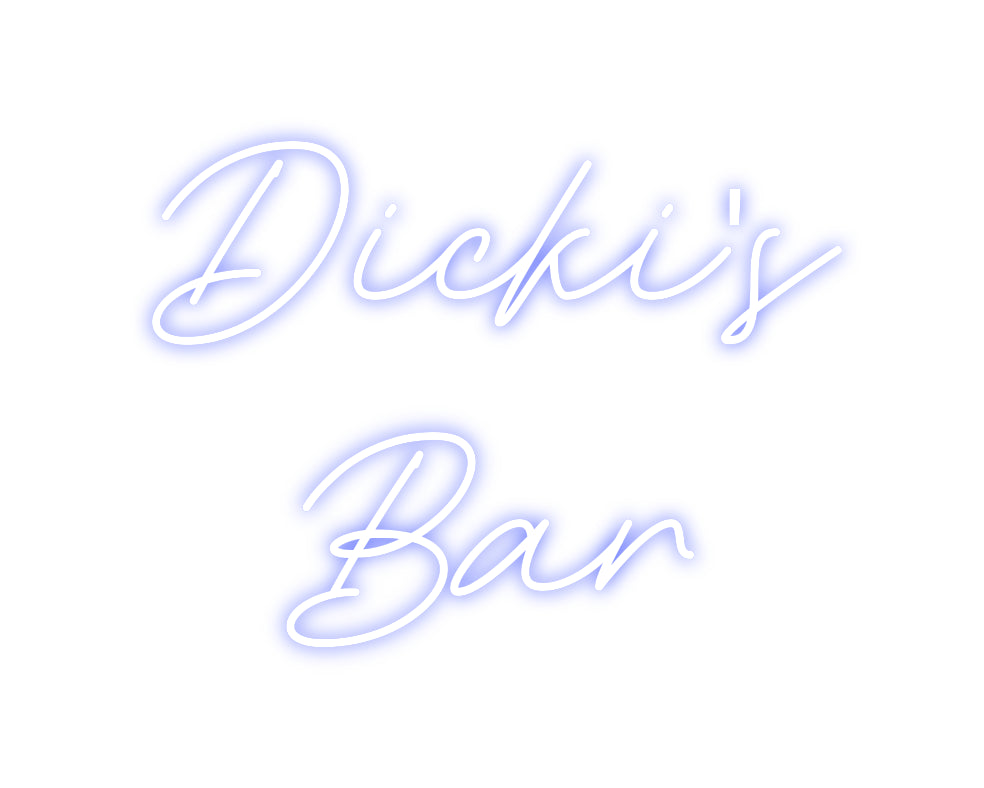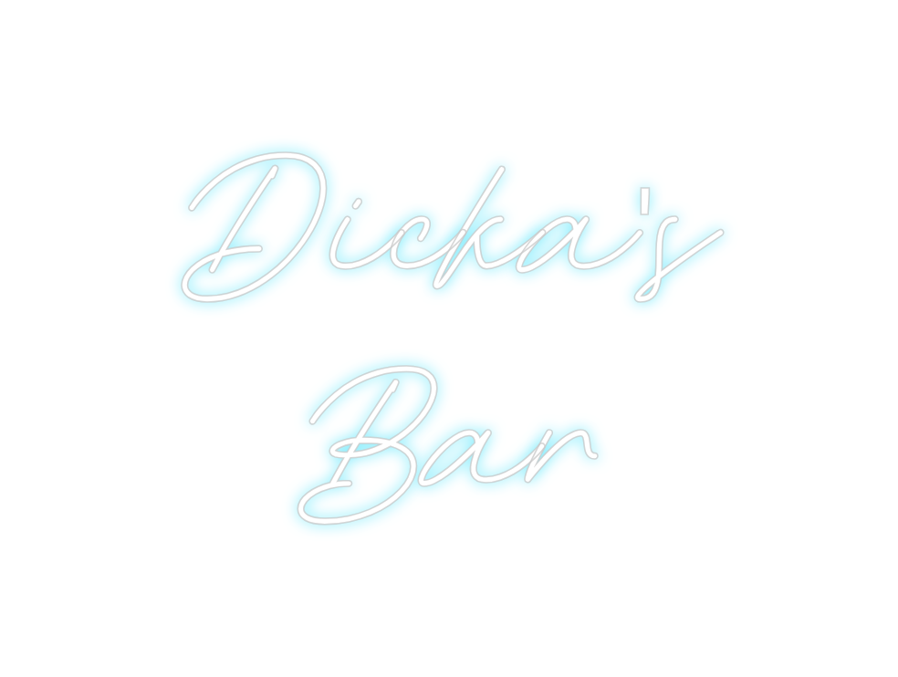 Text: Dicka's Bar Text Align: center Font: RocketColour: Ice BlueSize: 100cm wide / 100cm X 69.33cm / 39.37in X 27.3inBackboard: Cut to ShapeBackboard Colour: Clear Acrylic BackboardJacket: Coloured JacketMounting: HangingAdd a Heart or Star (Optional): None (Default)Neon Tube ...