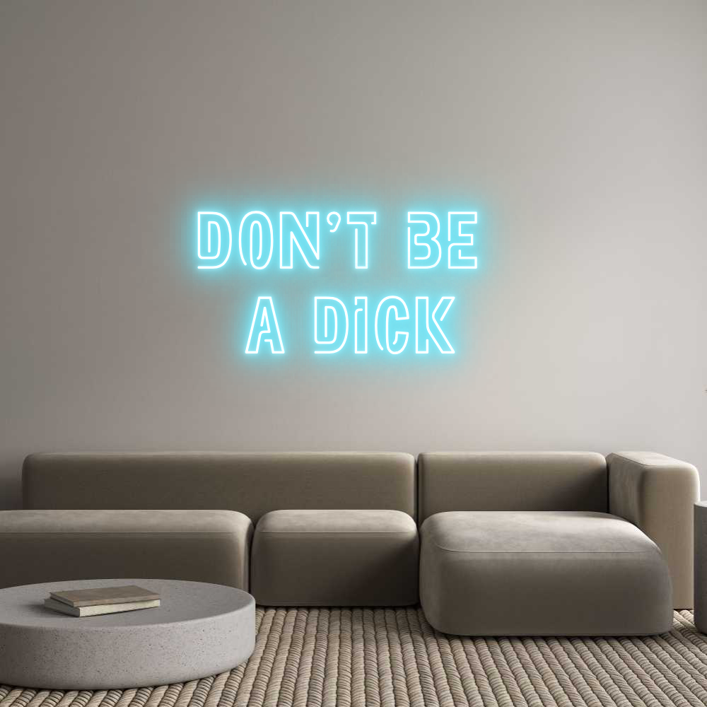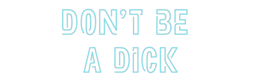 Text: Don't be a Dick Text Align: CenterFont: NeonColor: Ice BlueSize: 80cm wide / 80cm X 37.28cm / 31.5in X 14.68inBackboard: Cut to ShapeBackboard Color: Clear Acrylic BackboardJacket: Coloured JacketMounting: Wall mounting screwsAdd a Heart or Star (Optional): None (Default)Neon...