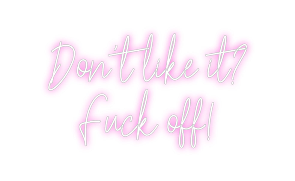 Text: Don't like it? Fuck off! Text Align: center Font: HestericaColour: PinkSize: 100cm wide / 100cm X 55.31cm / 39.37in X 21.78inBackboard: Cut to Letter (free upgrade)Jacket: Coloured JacketMounting: Wall mounting screwsAdd a Heart or Star (Optional): None (Default)Neon T...