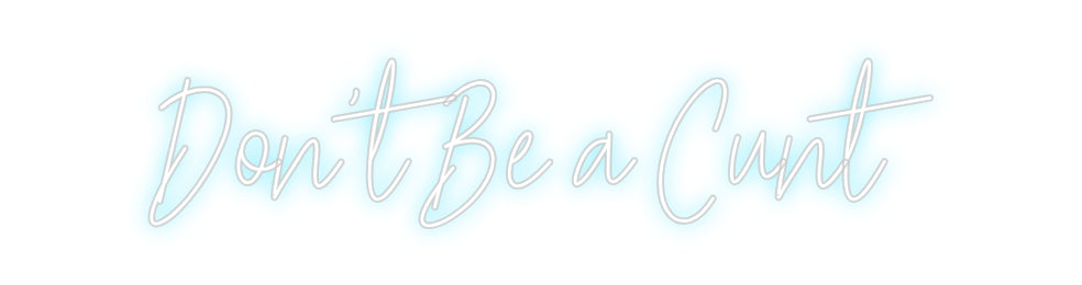 Text: Don't Be a Cunt Text Align: left Font: HestericaColour: Ice BlueSize: 100cm wide / 100cm X 20.4cm / 39.37in X 8.03inBackboard: Cut to ShapeBackboard Colour: Clear Acrylic BackboardJacket: Coloured JacketMounting: HangingAdd a Heart or Star (Optional): None (Default)Neon T...