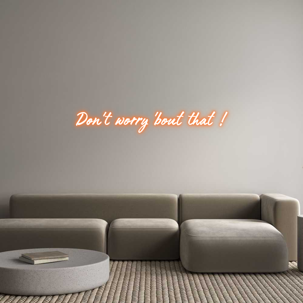 Text: Don't worry 'bout that ! Text Align: LeftFont: WorldColor: OrangeSize: 160cm wide / 160cm X 23.75cm / 62.99in X 9.35inMaterial: IndoorBackboard: Whole Board (free upgrade)Backboard Color: BlackJacket: Coloured JacketMounting: Wall mounting screwsAdd a Heart or Star (Optional): None (...