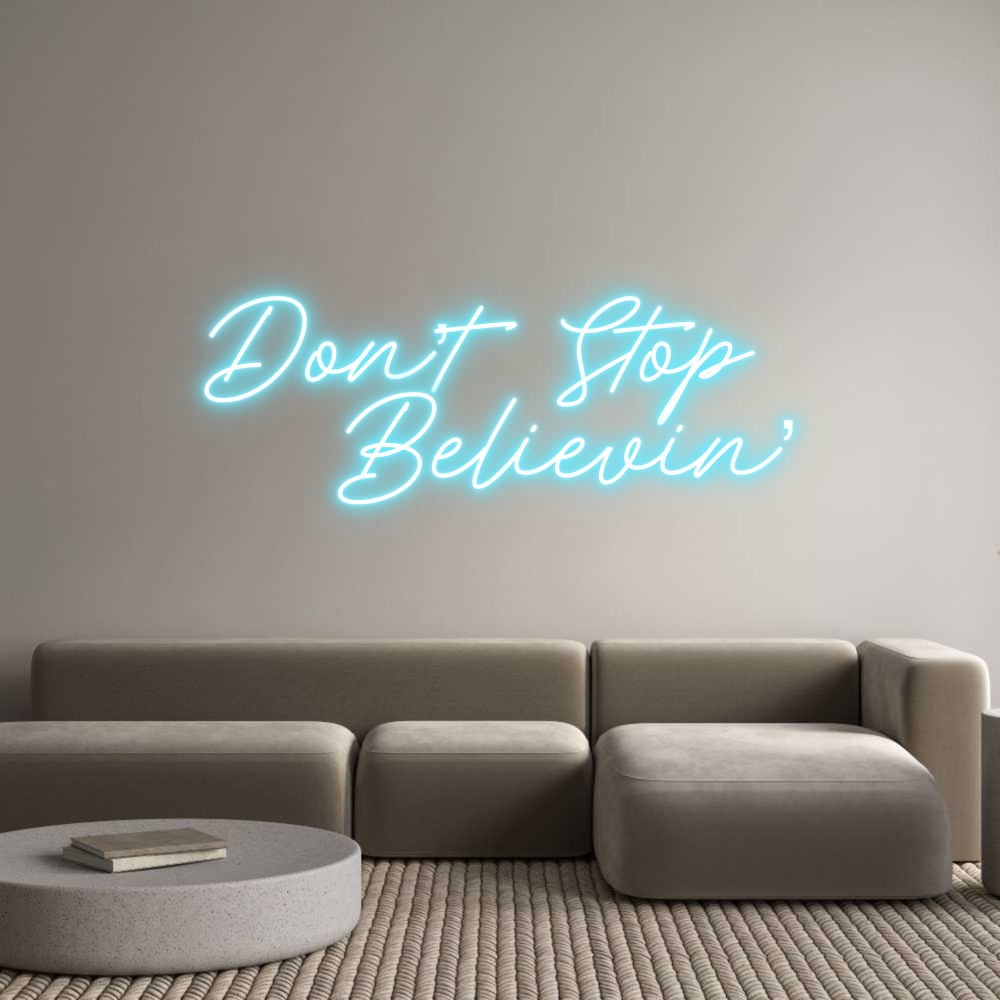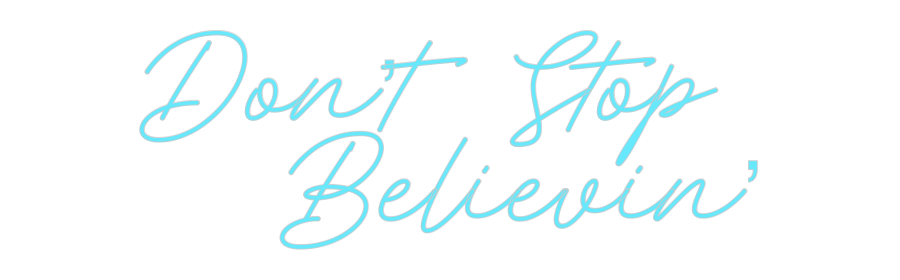 Text: Don’t Stop Believin’ Text Align: RightFont: RocketColor: Ice BlueSize: 60cm wide / 60cm X 29.91cm / 23.62in X 11.78inBackboard: Cut to ShapeBackboard Color: Clear Acrylic BackboardJacket: Coloured JacketMounting: Wall mounting screwsAdd a Heart or Star (Optional): None (Defau...