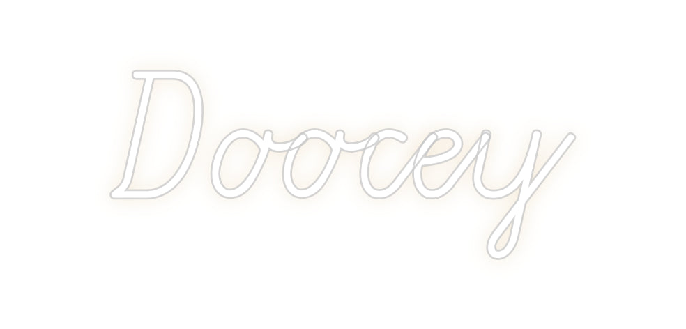 Text: Doocey Text Align: left Font: GruenewaldColour: Warm WhiteSize: 60cm wide / 60cm X 25.14cm / 23.62in X 9.9inBackboard: Cut to ShapeBackboard Colour: Clear Acrylic BackboardJacket: Coloured JacketMounting: Wall mounting screwsAdd a Heart or Star (Optional): StarNeon Tube T...