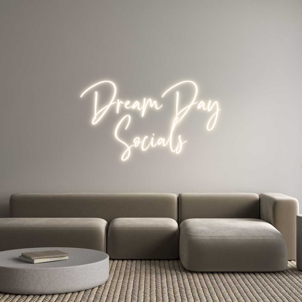Text: Dream Day Socials Text Align: CenterFont: OttawaColor: Warm WhiteSize: 60cm wide / 60cm X 51.5cm / 23.62in X 20.28inBackboard: Cut to Letter (free upgrade)Jacket: Coloured JacketMounting: Wall mounting screwsAdd a Heart or Star (Optional): None (Default)Neon Tube Thickness: Bo...