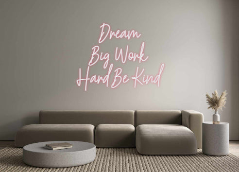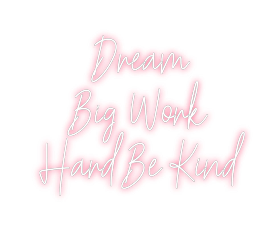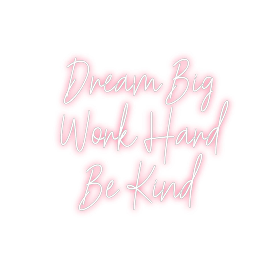 Text: Dream Big Work Hard Be Kind Text Align: center Font: HestericaColour: Light RedSize: 80cm wide / 80cm X 61cm / 31.5in X 24.02inBackboard: Cut to Letter (free upgrade)Jacket: Coloured JacketMounting: Wall mounting screwsAdd a Heart or Star (Optional): None (Default)Neon ...