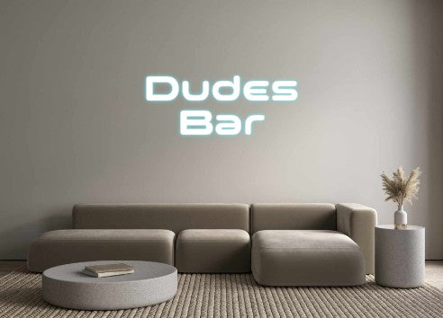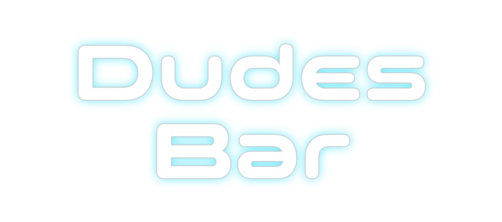Text: Dudes Bar Text Align: center Font: SpaceColour: Ice BlueSize: 40cm wide / 40cm X 15.29cm / 15.75in X 6.02inBackboard: Cut to Letter (free upgrade)Jacket: Coloured JacketMounting: Wall mounting screwsAdd a Heart or Star (Optional): None (Default)Neon Tube Thickness: Bold Tube (...