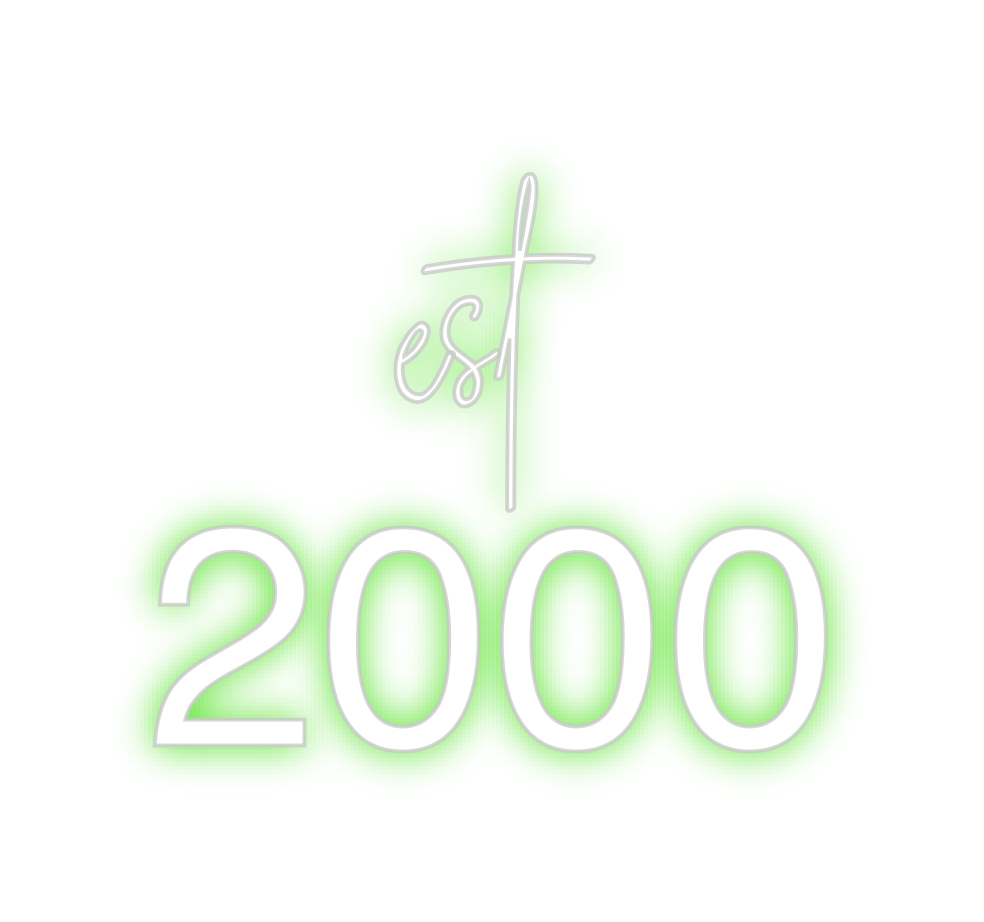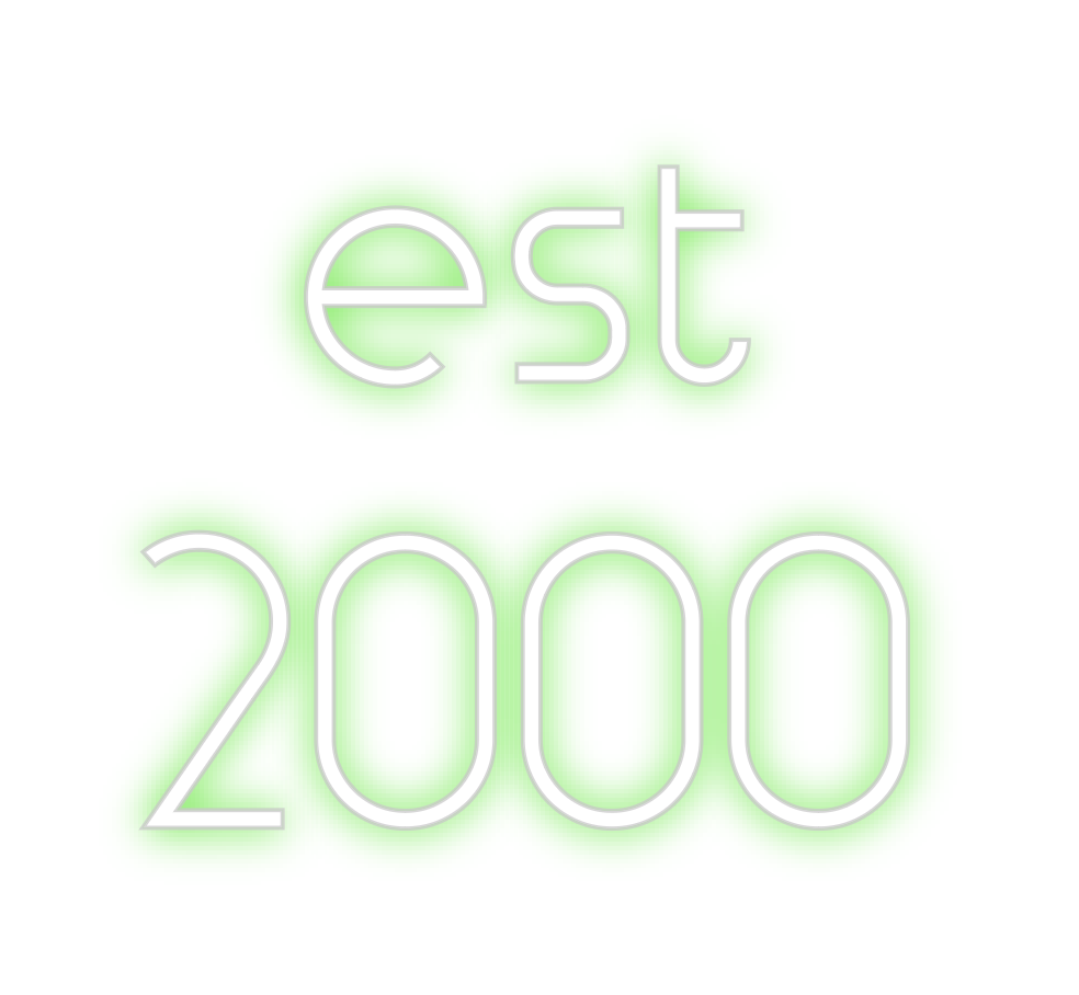 Text: est 2000 Text Align: center Font: TimeColour: GreenSize: 60cm wide / 60cm X 51.72cm / 23.62in X 20.36inBackboard: Cut to ShapeBackboard Colour: Clear Acrylic BackboardJacket: Coloured JacketMounting: HangingAdd a Heart or Star (Optional): None (Default)Neon Tube Thicknes...