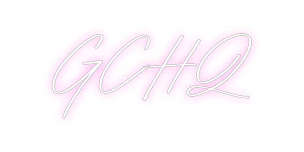 Text: GCHQ Text Align: left Font: BayshoreColour: Baby PinkSize: 40cm wide / 40cm X 17.54cm / 15.75in X 6.9inBackboard: Cut to Letter (free upgrade)Jacket: White JacketMounting: Wall mounting screwsAdd a Heart or Star (Optional): None (Default)Neon Tube Thickness: Classic Tube ...