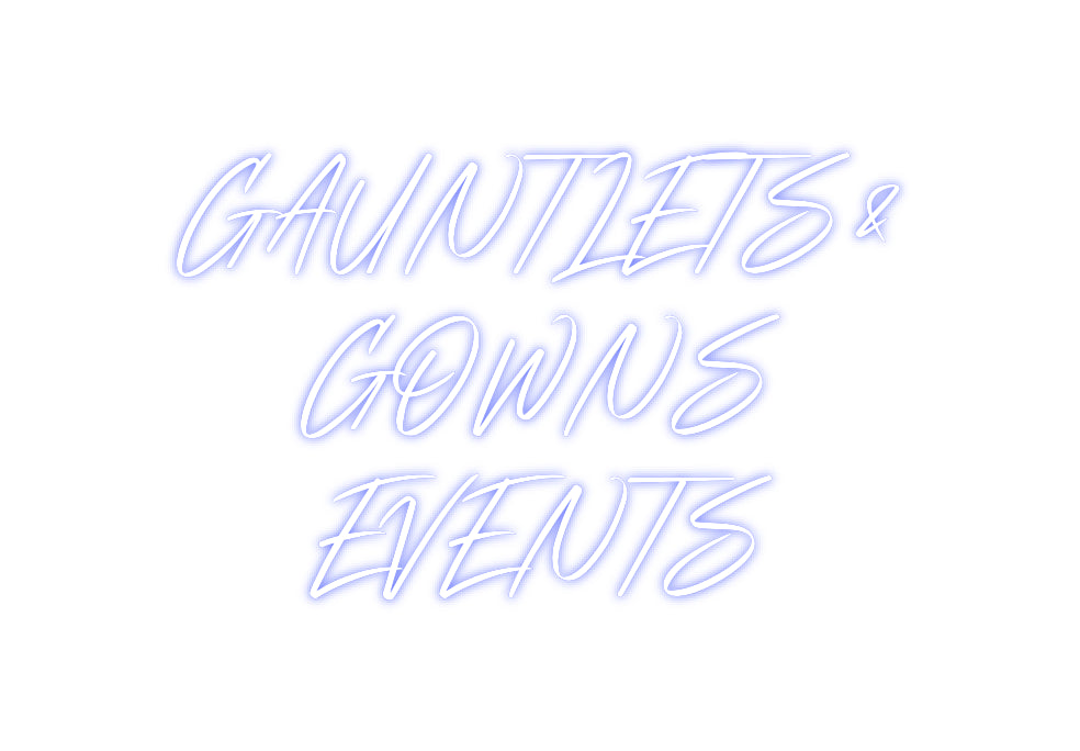 Text: GAUNTLETS & GOWNS EVENTS Text Align: center Font: StrudeColour: BlueSize: 180cm wide / 180cm X 114.24cm / 70.87in X 44.97inBackboard: Cut to Letter (free upgrade)Jacket: Coloured JacketMounting: HangingAdd a Heart or Star (Optional): None (Default)Neon Tube Thicknes...