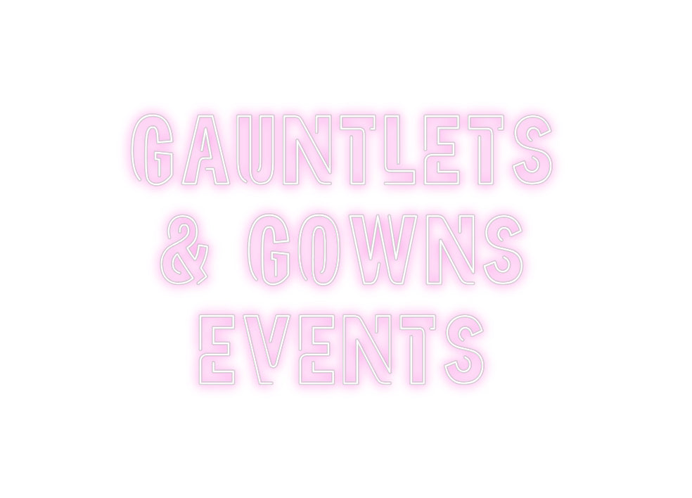 Text: GAUNTLETS & GOWNS EVENTS Text Align: center Font: NeonColour: PinkSize: 180cm wide / 180cm X 118.66cm / 70.87in X 46.72inBackboard: Cut to Letter (free upgrade)Jacket: Coloured JacketMounting: HangingAdd a Heart or Star (Optional): None (Default)Neon Tube Thickness:...