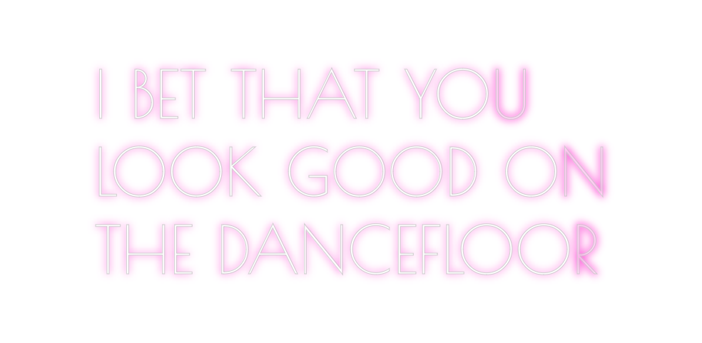 Text: I BET THAT YOU LOOK GOOD ON THE DANCEFLOOR Text Align: left Font: Poiret Colour: PinkSize: 100cm wide / 100cm X 42.83cm / 39.37in X 16.86inBackboard: Cut to ShapeJacket: Coloured JacketMounting: Wall mounting screwsNeon Tube Thickness: Bold Tube (8mm) (free upgrade)...