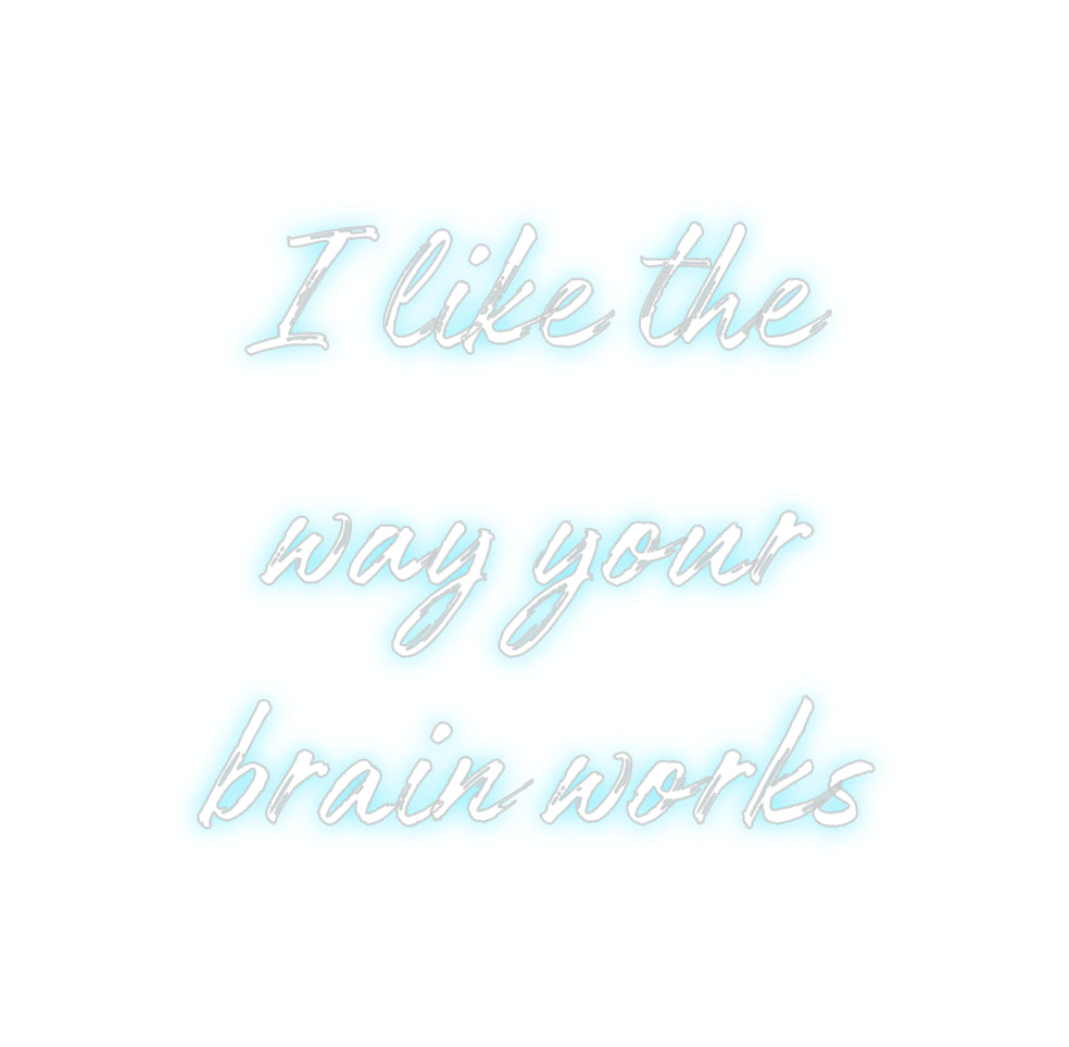 Text: I like the way your brain works Text Align: center Font: WorldColour: Ice BlueSize: 60cm wide / 60cm X 55.14cm / 23.62in X 21.71inBackboard: Cut to ShapeBackboard Colour: Clear Acrylic BackboardJacket: Coloured JacketMounting: HangingAdd a Heart or Star (Optional): None...