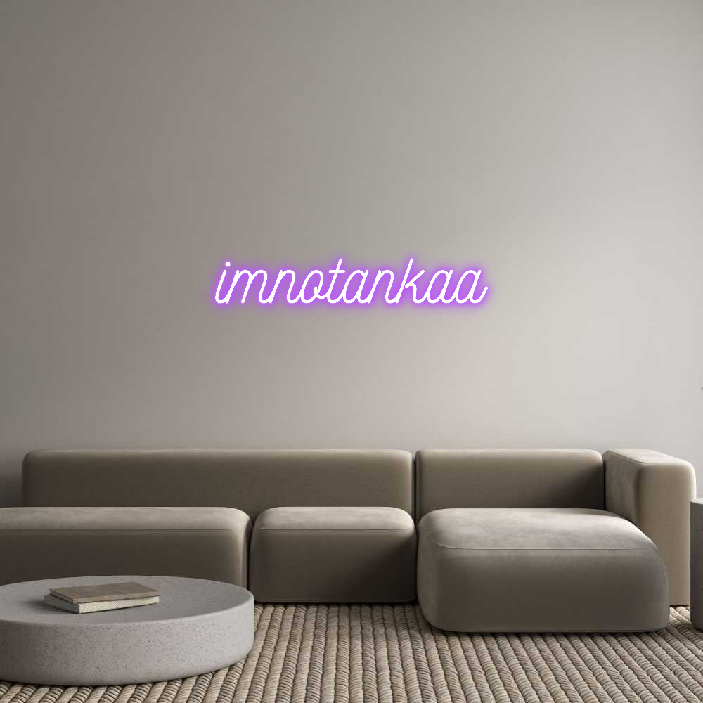 Text: imnotankaa Text Align: CenterFont: NickainleyColor: PurpleSize: 100cm wide / 100cm X 17.71cm / 39.37in X 6.97inMaterial: IndoorBackboard: Cut to Letter (free upgrade)Jacket: Coloured JacketMounting: Fast mount kitAdd a Heart or Star (Optional): None (Default)Neon Tube Thickness: Bold ...