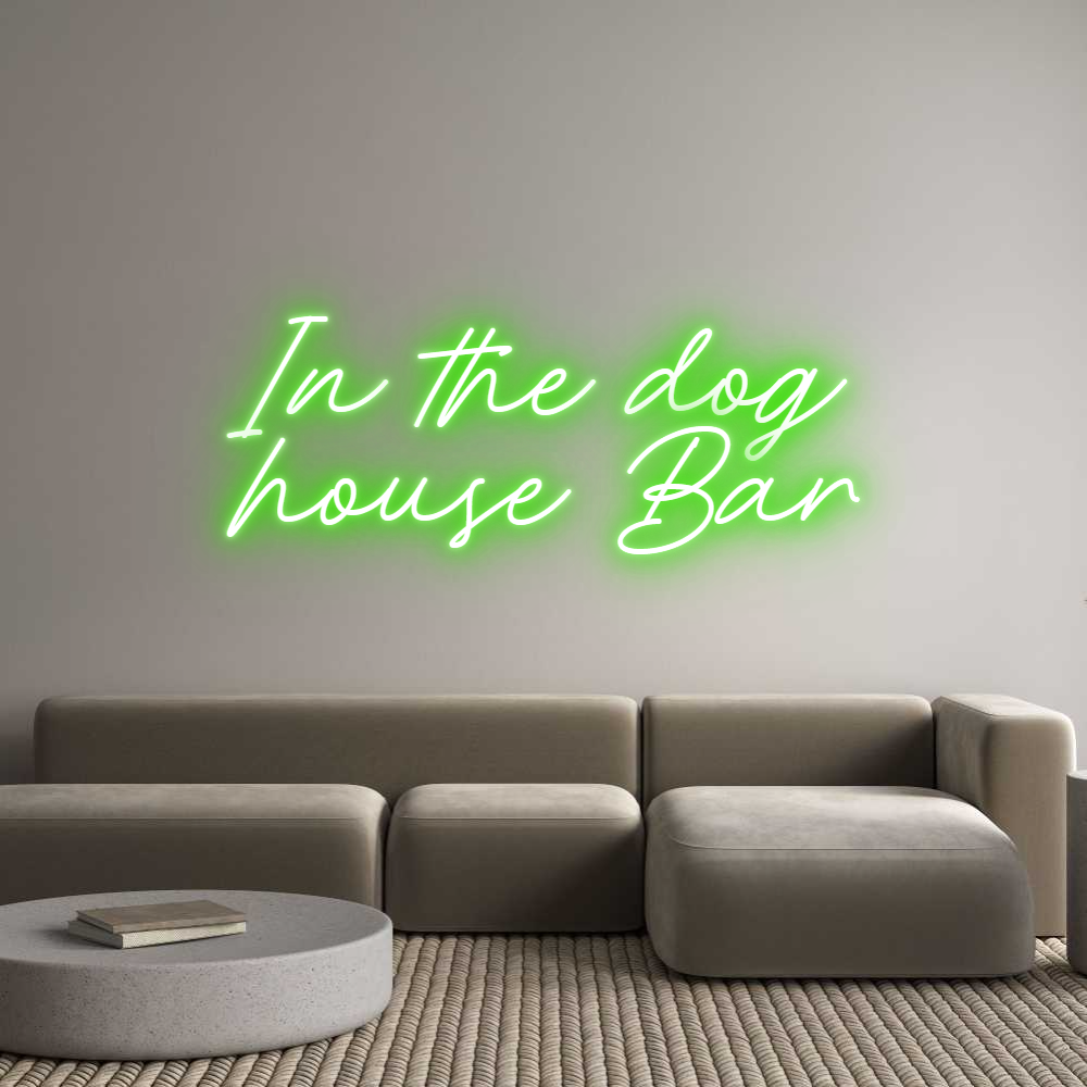 Text: In the dog house Bar Text Align: LeftFont: RocketColor: GreenSize: 200cm wide / 200cm X 98.16cm / 78.74in X 38.64inMaterial: Outdoor (+30%) Backboard: Whole Board (free upgrade)Backboard Color: Clear Acrylic BackboardJacket: Coloured JacketMounting: Wall mounting screwsAdd a H...