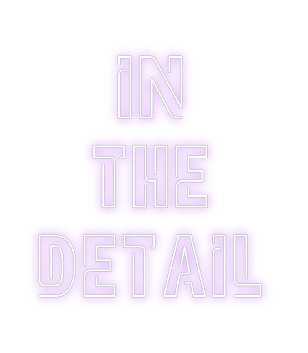 Text: In The Detail Text Align: center Font: NeonColour: PurpleSize: 120cm wide / 120cm X 130.21cm / 47.24in X 51.27inBackboard: Cut to ShapeBackboard Colour: Clear Acrylic BackboardJacket: Coloured JacketMounting: Wall mounting screwsAdd a Heart or Star (Optional): None (Default...