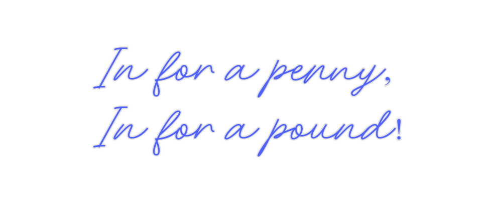 Text: In for a penny, In for a pound! Text Align: left Font: Rocket Colour: BlueSize: 100cm wide / 100cm X 34.85cm / 39.37in X 13.72inBackboard: Cut to ShapeBackboard Colour: Clear Acrylic Backboar...