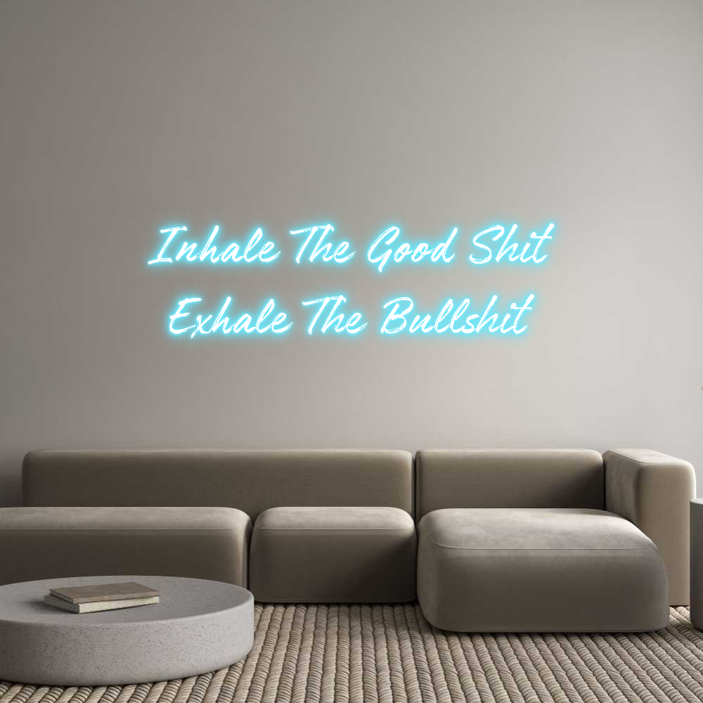 Text: Inhale The Good Shit Exhale The Bullshit Text Align: centerFont: WorldColour: Ice BlueSize: 120cm wide / 120cm X 35.79cm / 47.24in X 14.09inBackboard: Whole Board (free upgrade)Backboard Colour: Clear Acrylic BackboardJacket: White JacketMounting: Wall mounting screwsAdd a Hea...