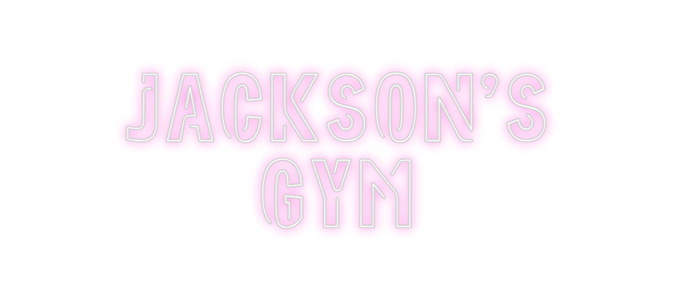 Text: jackson's gym Text Align: center Font: NeonColour: PinkSize: 80cm wide / 80cm X 30.52cm / 31.5in X 12.01inBackboard: Cut to Letter (free upgrade)Jacket: Coloured JacketMounting: Wall mounting screwsAdd a Heart or Star (Optional): None (Default)Neon Tube Thickness: Bold Tube (8...
