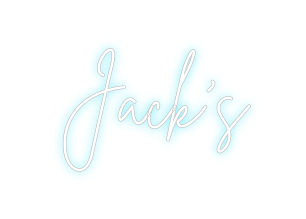 Text: Jack’s Text Align: center Font: BrittanyColour: Ice BlueSize: 60cm wide / 60cm X 39.41cm / 23.62in X 15.52inBackboard: Cut to Letter (free upgrade)Jacket: Coloured JacketMounting: Wall mounting screwsAdd a Heart or Star (Optional): None (Default)Neon Tube Thickness: Class...