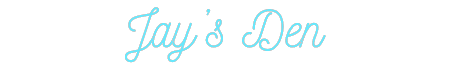 Text: Jay’s Den Text Align: leftFont: NickainleyColour: Ice BlueSize: 80cm wide / 80cm X 22.61cm / 31.5in X 8.9inBackboard: Cut to ShapeBackboard Colour: Clear Acrylic BackboardJacket: Coloured JacketMounting: Wall mounting screwsAdd a Heart or Star (Optional): None (Default)Neon Tub...