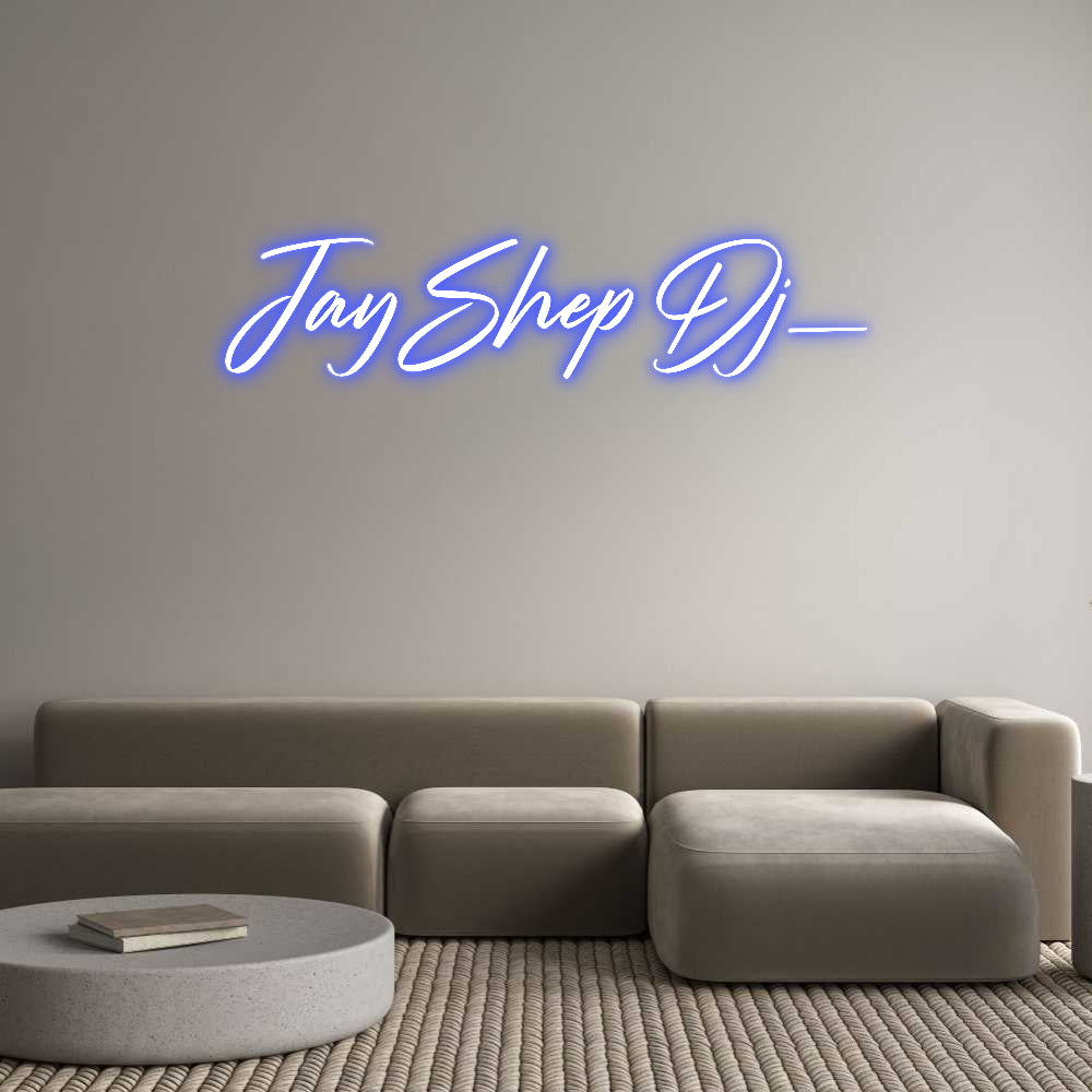 Text: JayShep Dj_ Text Align: left Font: StrudeColour: BlueSize: 60cm wide / 60cm X 13.56cm / 23.62in X 5.34inBackboard: Cut to ShapeBackboard Colour: Clear Acrylic BackboardJacket: Coloured JacketMounting: Wall mounting screwsAdd a Heart or Star (Optional): None (Default)Neon ...