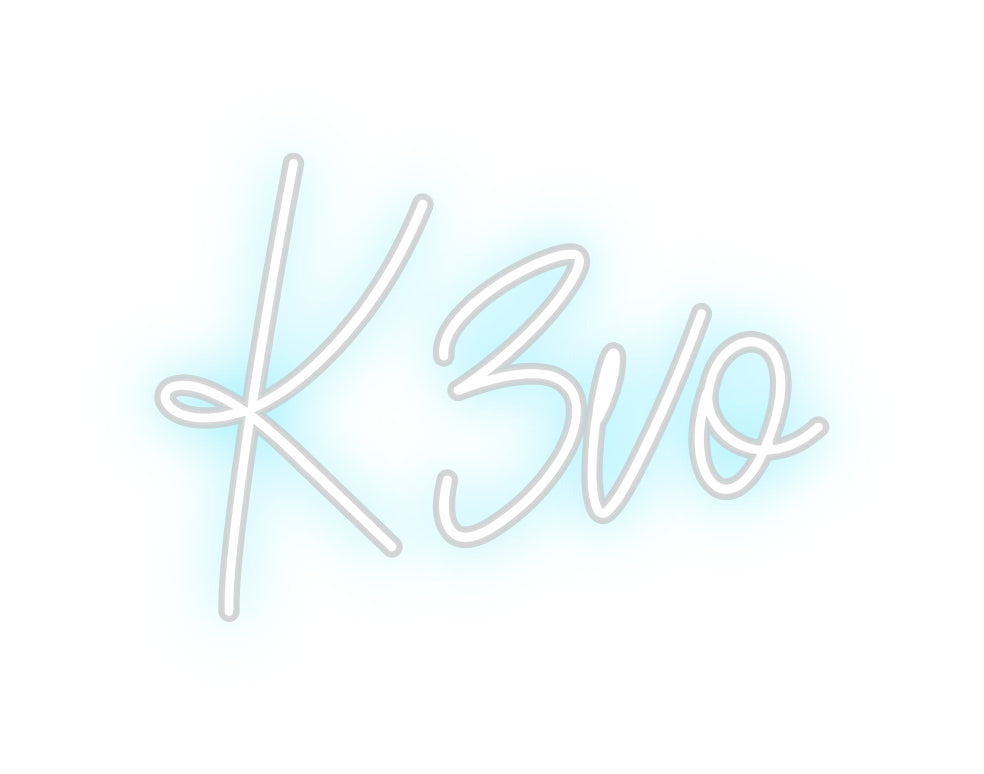 Text: K3vo Text Align: left Font: HestericaColour: Ice BlueSize: 40cm wide / 40cm X 29.03cm / 15.75in X 11.43inBackboard: Cut to Letter (free upgrade)Jacket: White JacketMounting: Wall mounting screwsAdd a Heart or Star (Optional): None (Default)Neon Tube Thickness: Classic Tub...