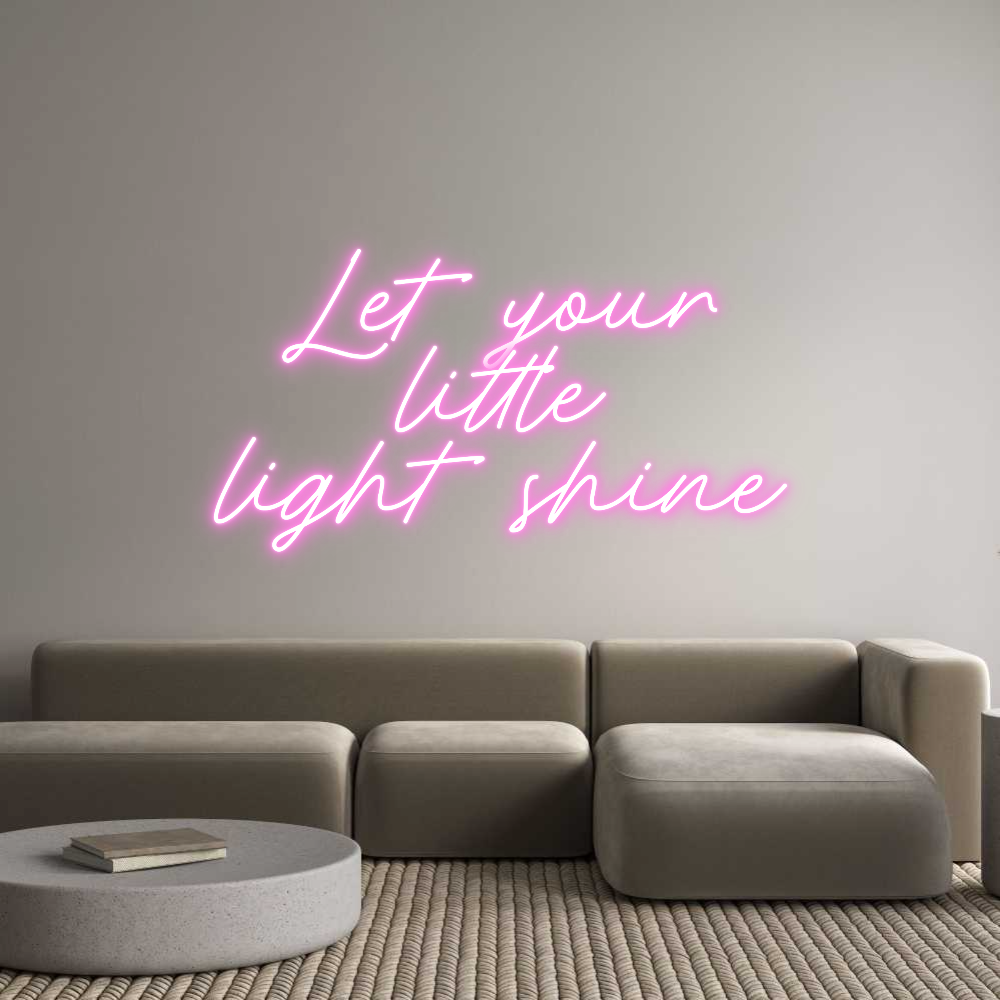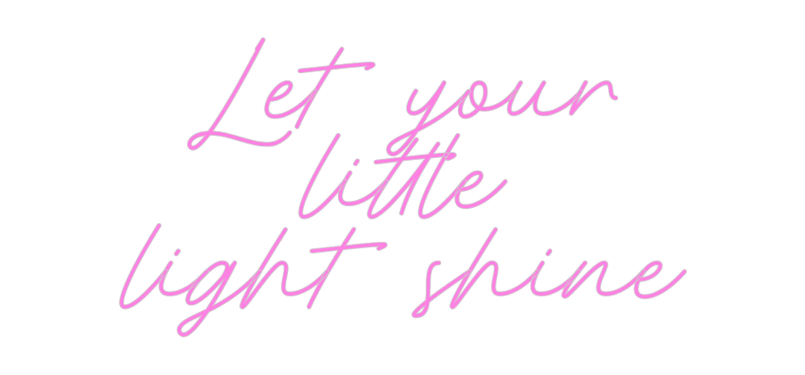 Text: Let your little light shine Text Align: centerFont: RocketColour: Baby PinkSize: 60cm wide / 60cm X 47.3cm / 23.62in X 18.62inBackboard: Cut to Letter (free upgrade)Jacket: Coloured JacketMounting: Wall mounting screwsAdd a Heart or Star (Optional): StarNeon Tube Thickness: B...