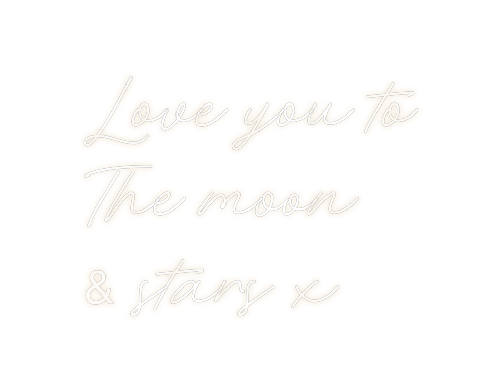 Text: Love you to The moon & stars x Text Align: left Font: Rocket Colour: Warm WhiteSize: 80cm wide / 80cm X 57.71cm / 31.5in X 22.72inBackboard: Cut to Letter (free upgrade)Jacket: White JacketMounting: Wall mounting screwsNeon Tube Thickness: Bold Tube (8mm) (free ...