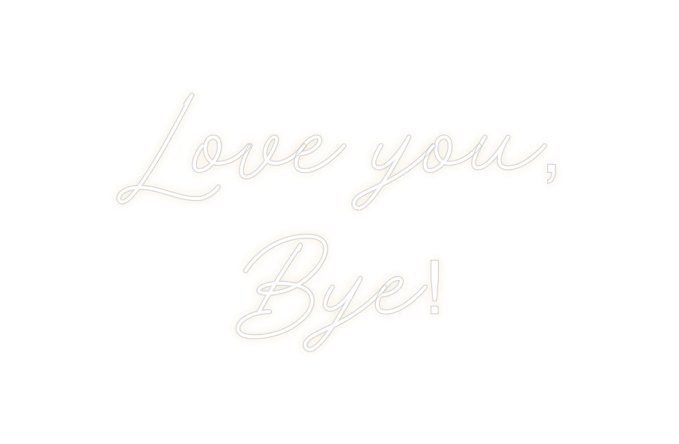 Text: Love you, Bye! Text Align: center Font: RocketColour: Warm WhiteSize: 100cm wide / 100cm X 59.41cm / 39.37in X 23.39inBackboard: Cut to Letter (free upgrade)Jacket: White JacketMounting: Wall mounting screwsAdd a Heart or Star (Optional): None (Default)Neon Tube Thickne...