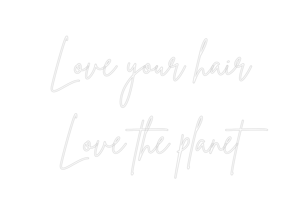 Text: Love your hair Love the planet Text Align: center Font: Brittany Colour: WhiteSize: 120cm wide / 120cm X 78.95cm / 47.24in X 31.08inBackboard: Cut to Letter (free upgrade)Jacket: Coloured JacketMounting: Wall mounting screwsNeon Tube Thickness: Classic Tube (6mm)Re...