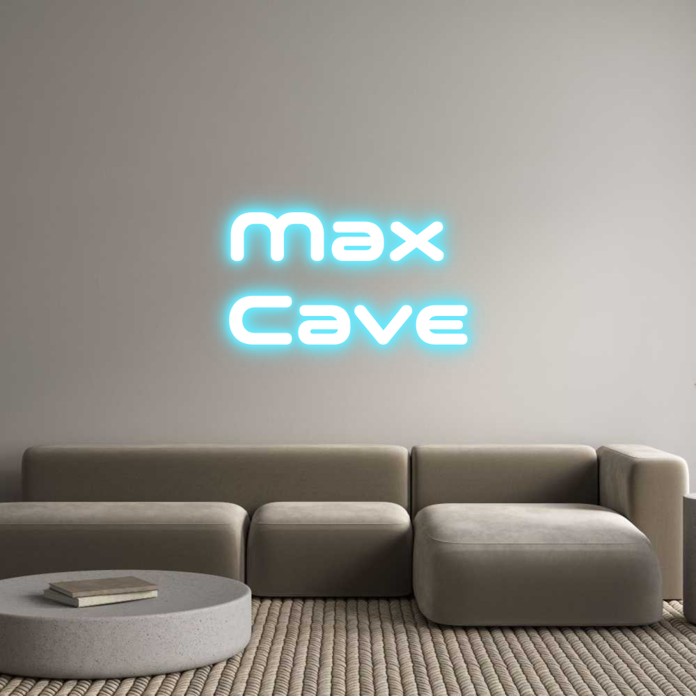 Text: Max Cave Text Align: centerFont: SpaceColour: Ice BlueSize: 60cm wide / 60cm X 29.85cm / 23.62in X 11.75inBackboard: Cut to Letter (free upgrade)Jacket: White JacketMounting: Wall mounting screwsAdd a Heart or Star (Optional): None (Default)Neon Tube Thickness: Bold Tube (8mm...