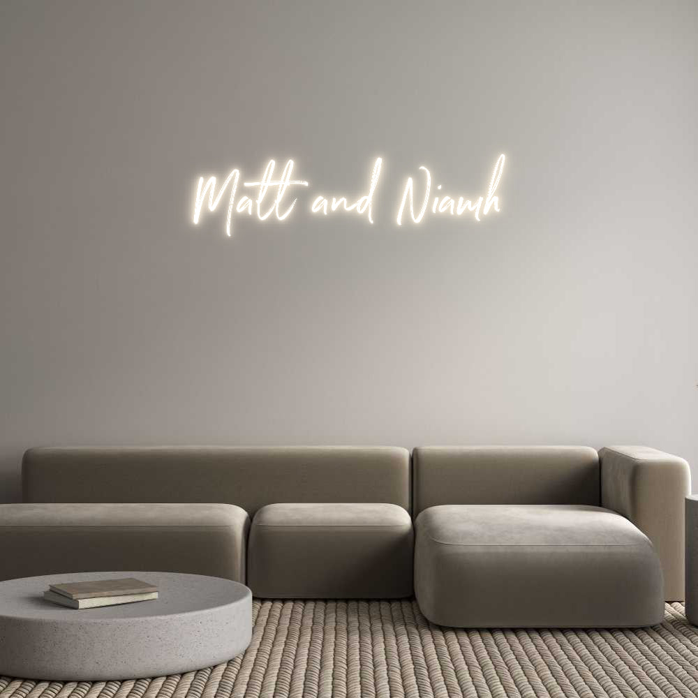 Text: Matt and Niamh Text Align: left Font: NorthwellColour: Warm WhiteSize: 120cm wide / 120cm X 31.79cm / 47.24in X 12.51inBackboard: Cut to ShapeBackboard Colour: Clear Acrylic BackboardJacket: White JacketMounting: Wall mounting screwsAdd a Heart or Star (Optional): None (D...