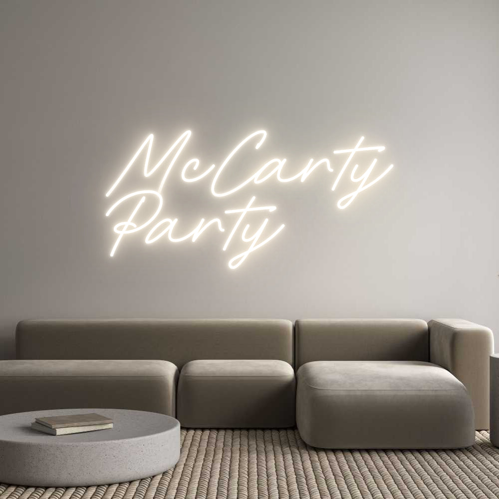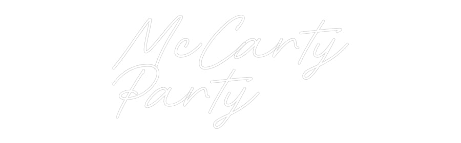 Text: McCarty Party Text Align: leftFont: RocketColour: Warm WhiteSize: 40cm wide / 40cm X 24.32cm / 15.75in X 9.57inBackboard: Cut to Letter (free upgrade)Jacket: White JacketMounting: HangingAdd a Heart or Star (Optional): None (Default)Neon Tube Thickness: Classic Tube (6mm)Remot...