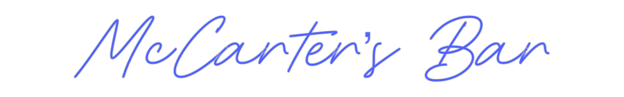 Text: McCarter’s Bar Text Align: leftFont: RocketColour: BlueSize: 80cm wide / 80cm X 11.5cm / 31.5in X 4.53inBackboard: Cut to Letter (free upgrade)Jacket: Coloured JacketMounting: Wall mounting screwsAdd a Heart or Star (Optional): None (Default)Neon Tube Thickness: Classic Tube (6...