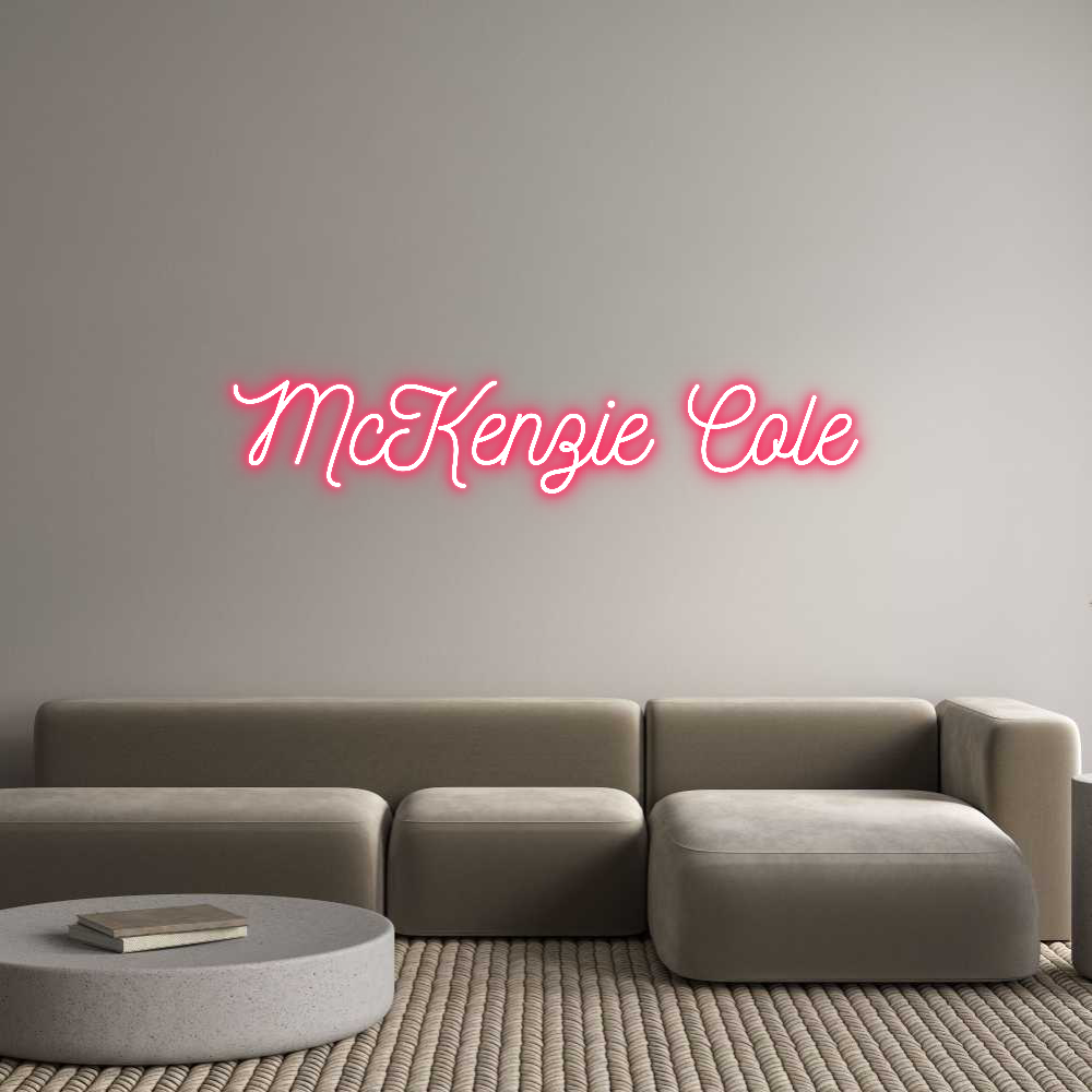 Text: McKenzie Cole Text Align: leftFont: NickainleyColour: Light RedSize: 80cm wide / 80cm X 15.42cm / 31.5in X 6.07inBackboard: Cut to Letter (free upgrade)Jacket: Coloured JacketMounting: Wall mounting screwsAdd a Heart or Star (Optional): None (Default)Neon Tube Thickness: Bold T...