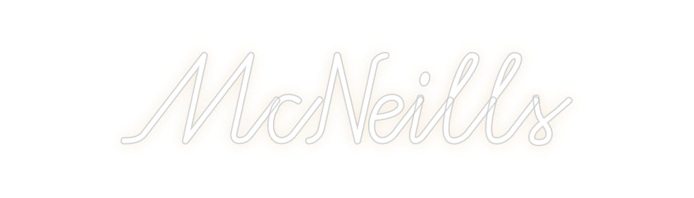 Text: McNeills Text Align: left Font: GruenewaldColour: Warm WhiteSize: 60cm wide / 60cm X 13.56cm / 23.62in X 5.34inBackboard: Cut to Letter (free upgrade)Jacket: Coloured JacketMounting: HangingAdd a Heart or Star (Optional): None (Default)Neon Tube Thickness: Bold Tube (8mm)...