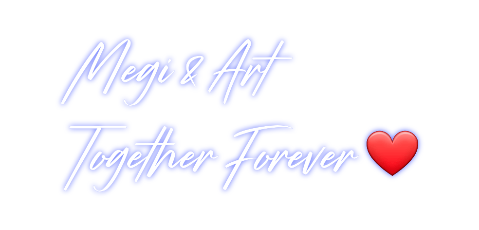 Text: Megi & Art Together Forever ❤️ Text Align: left Font: StrudeColour: BlueSize: 120cm wide / 120cm X 50.25cm / 47.24in X 19.78inBackboard: Cut to ShapeJacket: Coloured JacketMounting: Wall mounting screwsAdd a Heart or Star (Optional): None (Default)Neon Tube Thickness...
