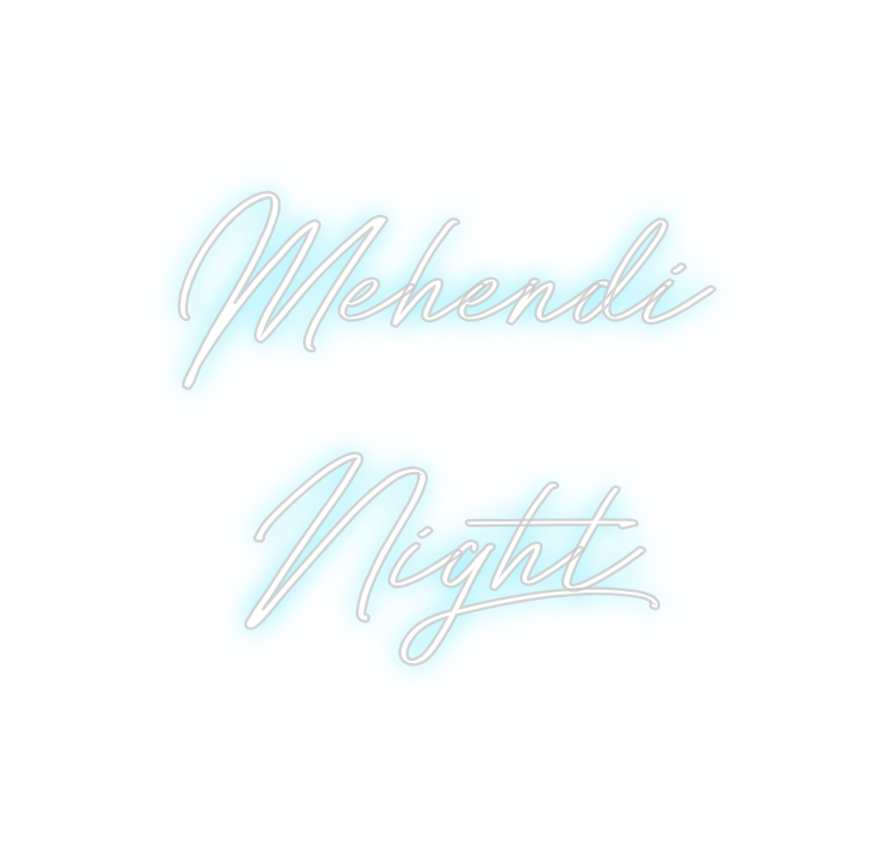 Text: Mehendi Night Text Align: center Font: Bayshore Colour: Ice BlueSize: 60cm wide / 60cm X 54.5cm / 23.62in X 21.46inBackboard: Cut to Letter (free upgrade)Jacket: Coloured JacketMounting: Wall mounting screwsNeon Tube Thickness: Bold Tube (8mm) (free upgrade)Remote ...