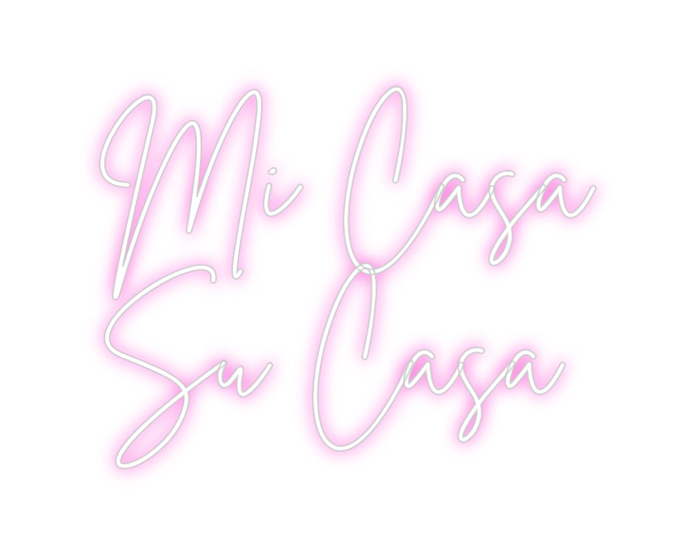 Text: Mi Casa Su Casa Text Align: left Font: BrittanyColour: PinkSize: 60cm wide / 60cm X 44.14cm / 23.62in X 17.38inBackboard: Cut to Letter (free upgrade)Jacket: Coloured JacketMounting: Wall mounting screwsAdd a Heart or Star (Optional): None (Default)Neon Tube Thickness: B...