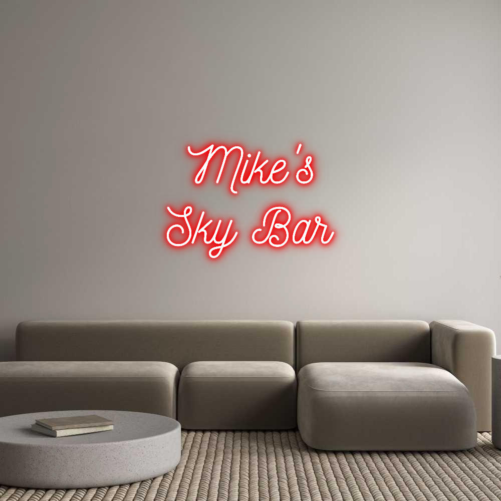 Text: Mike's Sky Bar Text Align: CenterFont: NickainleyColor: RedSize: 60cm wide / 60cm X 42.65cm / 23.62in X 16.79inBackboard: Cut to ShapeBackboard Color: Clear Acrylic BackboardJacket: Coloured JacketMounting: HangingAdd a Heart or Star (Optional): None (Default)Neon Tube Thickne...
