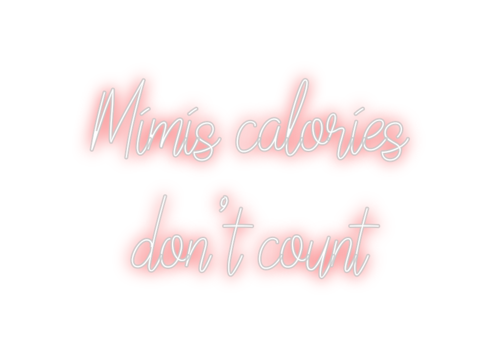 Text: Mimis calories don’t count Text Align: center Font: LinoleoColour: Colour Changing Neon sign/ RGB +85% price increase. Lights can be controlled through remoteSize: 120cm wide / 120cm X 78.83cm / 47.24in X 31.03inBackboard: Cut to Letter (free upgrade)Jacket: White Jacket...
