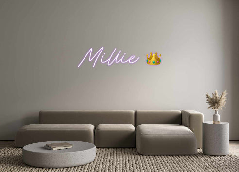 Text: Millie Text Align: LeftFont: RocketColor: PurpleSize: 100cm wide / 100cm X 32.3cm / 39.37in X 12.72inMaterial: IndoorBackboard: Cut to Letter (free upgrade)Jacket: Coloured JacketMounting: Wall mounting screwsAdd a Heart or Star (Optional): None (Default)Neon Tube Thickness: B...