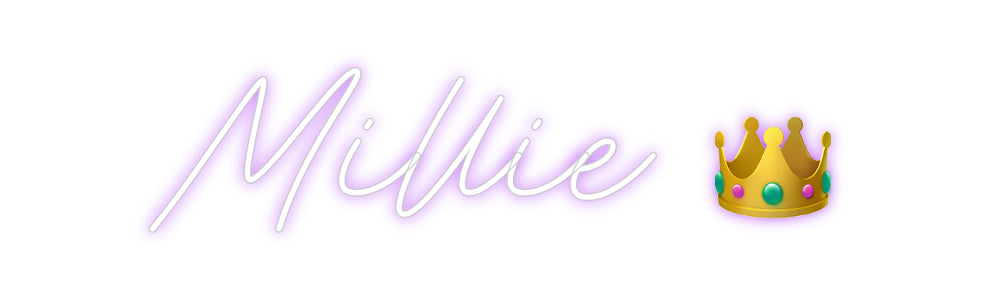 Text: Millie 👑 Text Align: left Font: RocketColour: PurpleSize: 60cm wide / 60cm X 14.66cm / 23.62in X 5.77inBackboard: Cut to ShapeBackboard Colour: Clear Acrylic BackboardJacket: Coloured JacketMounting: Wall mounting screwsAdd a Heart or Star (Optional): None (Default)Neon T...