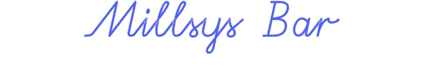 Text: Millsys Bar Text Align: leftFont: GruenewaldColour: BlueSize: 60cm wide / 60cm X 13.02cm / 23.62in X 5.13inBackboard: Cut to ShapeBackboard Colour: Clear Acrylic BackboardJacket: Coloured JacketMounting: Wall mounting screwsAdd a Heart or Star (Optional): None (Default)Neon Tu...