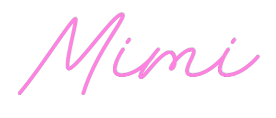 Text: Mimi Text Align: centerFont: RocketColour: Baby PinkSize: 80cm wide / 80cm X 28.3cm / 31.5in X 11.14inBackboard: Cut to Letter (free upgrade)Jacket: White JacketMounting: Fast mount kitAdd a Heart or Star (Optional): None (Default)Neon Tube Thickness: Bold Tube (8mm) (free upgr...