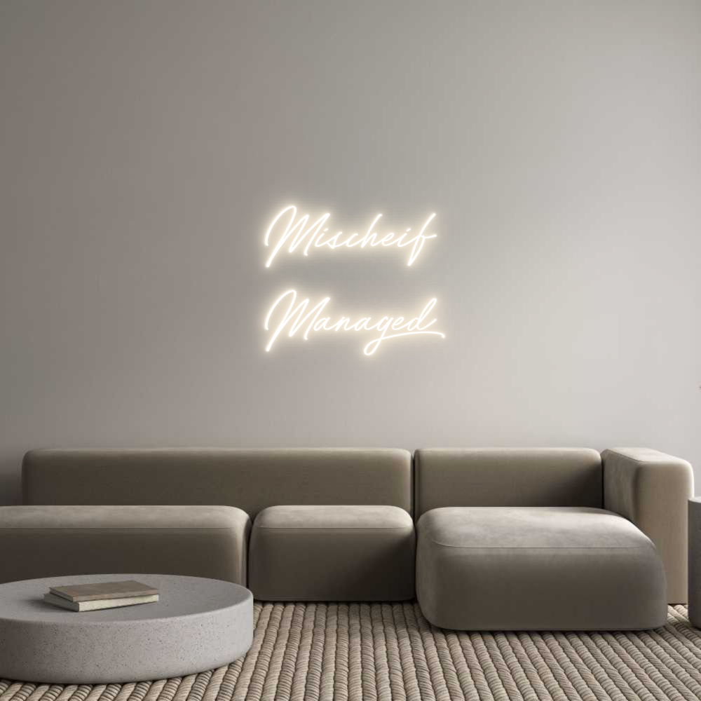 Text: Mischeif Managed Text Align: centerFont: BayshoreColour: Warm WhiteSize: 60cm wide / 60cm X 53.35cm / 23.62in X 21.01inBackboard: Cut to ShapeBackboard Colour: Clear Acrylic BackboardJacket: Coloured JacketMounting: Wall mounting screwsAdd a Heart or Star (Optional): None (Def...