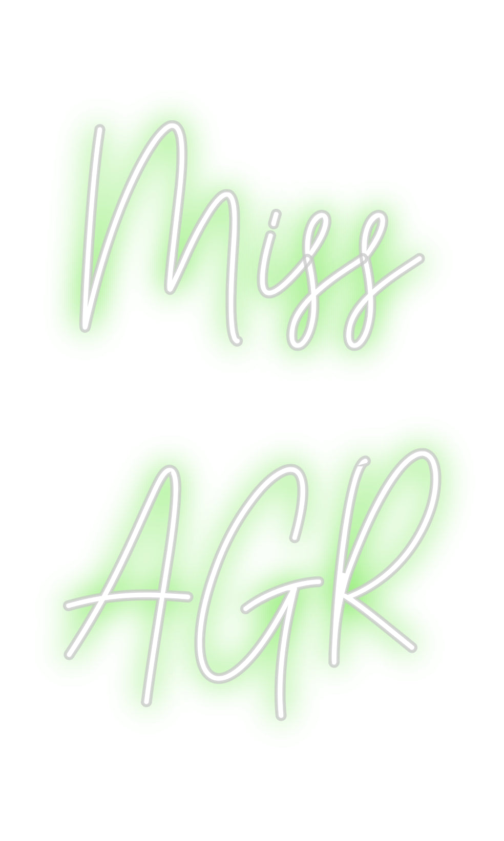 Text: Miss AGR Text Align: left Font: HestericaColour: GreenSize: 20cm wide / 20cm X 32.19cm / 7.87in X 12.67inBackboard: Cut to Letter (free upgrade)Jacket: White JacketMounting: HangingAdd a Heart or Star (Optional): None (Default)Neon Tube Thickness: Classic Tube (6mm)Remot...