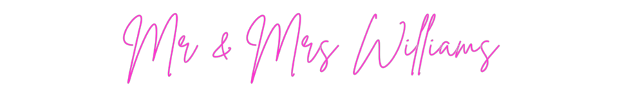 Text: Mr & Mrs Williams Text Align: leftFont: BrittanyColour: PinkSize: 100cm wide / 100cm X 18.21cm / 39.37in X 7.17inBackboard: Cut to Letter (free upgrade)Jacket: Coloured JacketMounting: Wall mounting screwsAdd a Heart or Star (Optional): HeartNeon Tube Thickness: Bold Tube (...