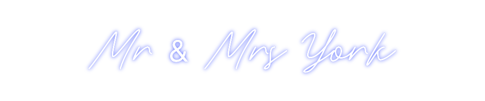 Text: Mr & Mrs York Text Align: left Font: Rocket Colour: BlueSize: 100cm wide / 100cm X 14.74cm / 39.37in X 5.8inBackboard: Cut to Letter (free upgrade)Jacket: Coloured JacketMounting: Wall mounting screwsNeon Tube Thickness: Classic Tube (6mm)Remote Dimmer: NoPowe...
