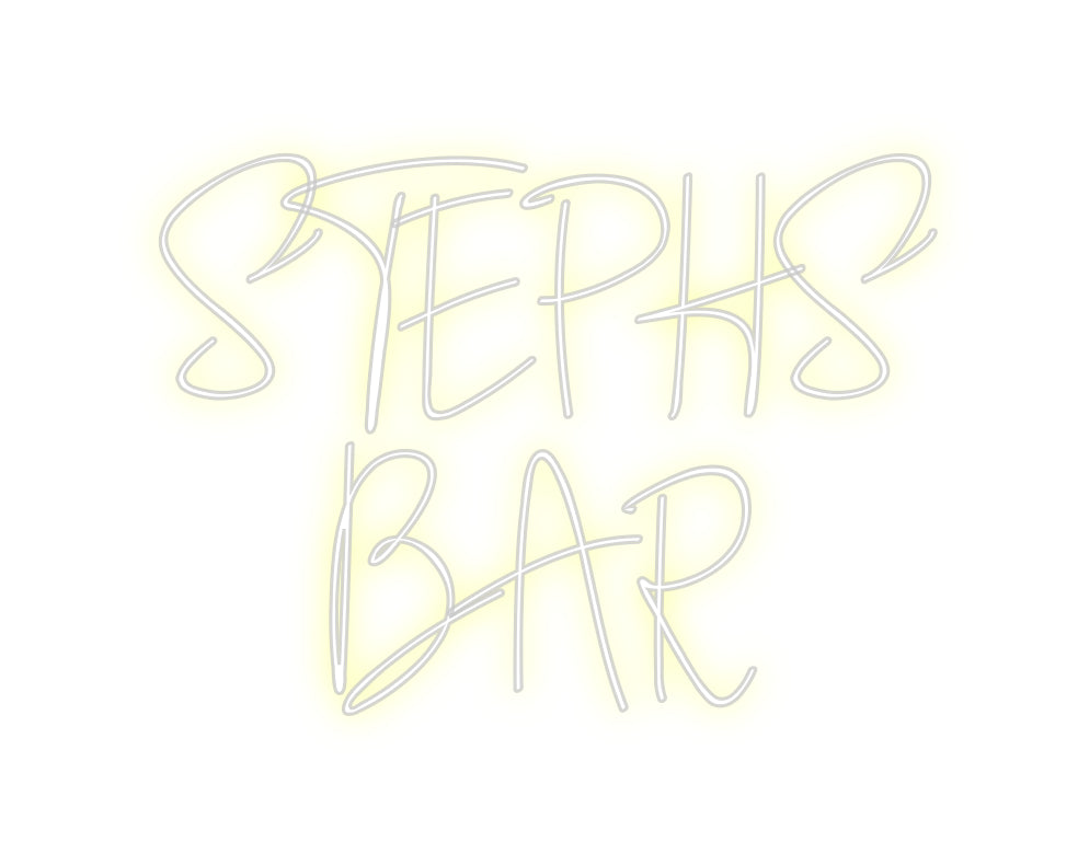 Text: STEPHS BAR Text Align: center Font: SouthamptonColour: YellowSize: 60cm wide / 60cm X 44.56cm / 23.62in X 17.54inBackboard: Cut to Letter (free upgrade)Jacket: White JacketMounting: Wall mounting screwsAdd a Heart or Star (Optional): None (Default)Neon Tube Thickness: ...